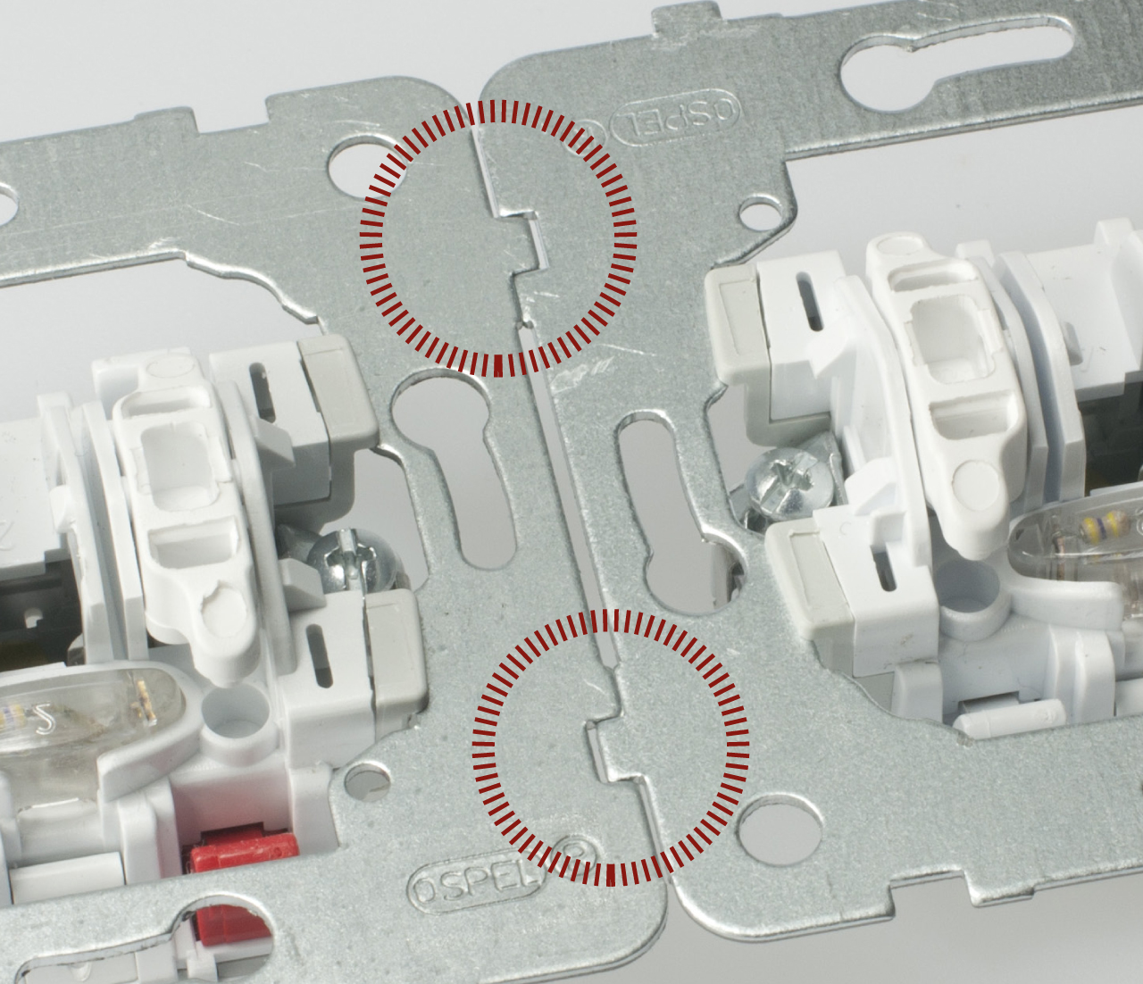 rozstaw i wzajemne położenie modułów w puszkach wielokrotnych.