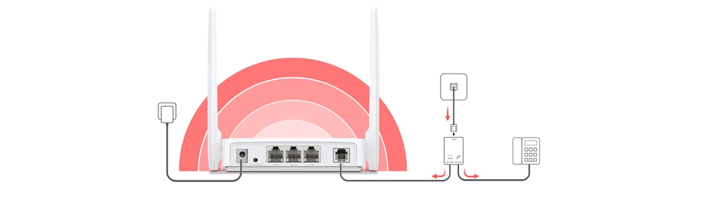 Mercusys MW300D pozwala rozdzielać sygnał internetowy i emitować fale Wi-Fi w domu lub biurze. Dzięki prezentowanemu routerowi Wi-Fi możliwe jest podłączenie do sieci globalnej wszelkich urządzeń z dostępem do internetu na danym obszarze. Wybierz router Mercusys MW300D i ciesz się szybką i bezprzewodową transmisją danych w każdym zakątku swojego domu.