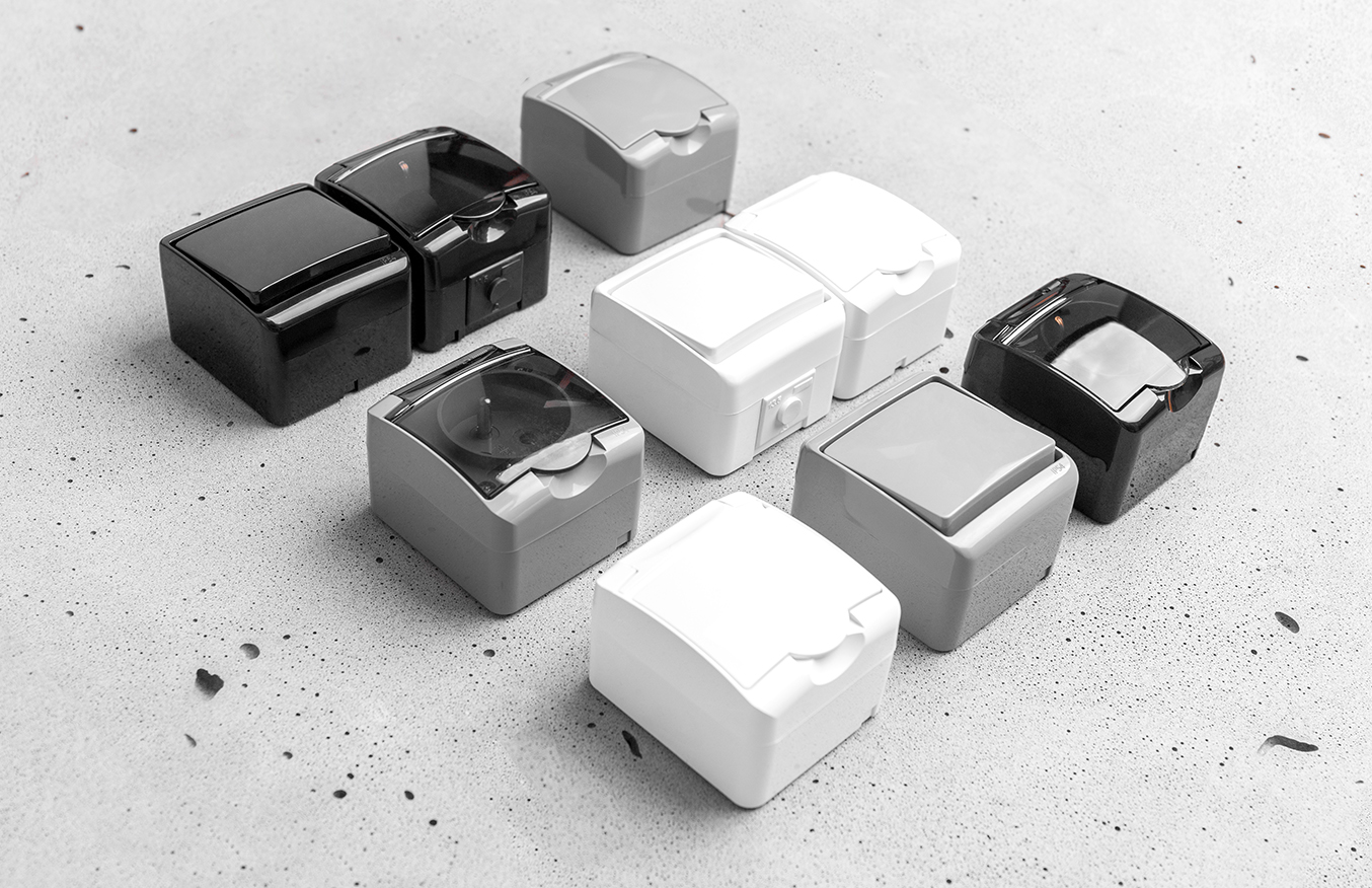 Produkty serii JUNIOR to zgrabna, kompaktowa forma o niewielkich rozmiarach. Osprzęt przeznaczony jest do instalacji natynkowej na zewnątrz lub w pomieszczeniach wilgotnych np. garażach, piwnicach, pomieszczeniach gospodarczych z dostępem do wody itp.