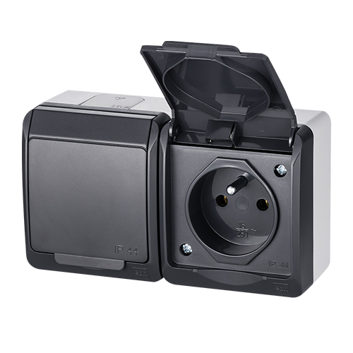 - hermetyczny osprzęt natynkowy charakteryzuje się szczelnością IP44