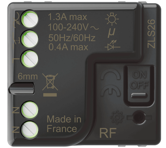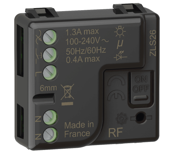 Mikromoduł oświetleniowy jest łatwy w montażu i współpracuje z każdym typem oświetlenia oraz mieści się wewnątrz lampy lub kinkietu. Wystarczy podłączyć go do systemu sterowania bezprzewodowego, by stał się bezprzewodowym punktem sterowania oświetleniem,
